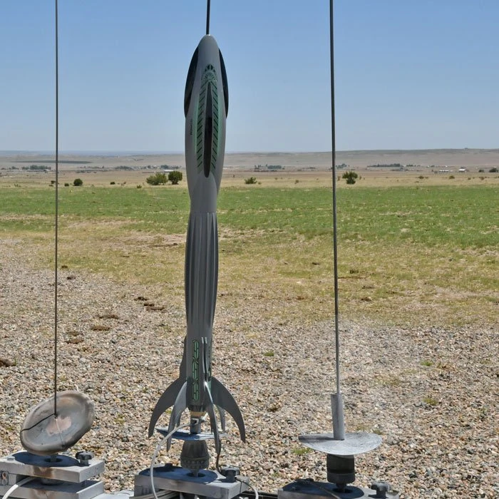The Vesta Intruder model rocket stands over 2 feet tall and launches on 24mm diameter motors! It disappears into the sky like the light-speed spacecraft it was designed to be, and taunts us with the question: “Are we alone in the universe?” Do you really want to know?