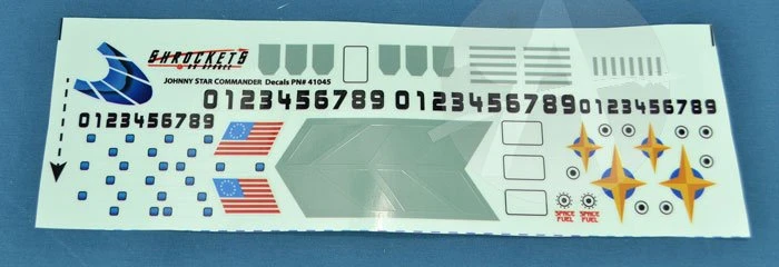 The Johnny Star Commander model rocket is a sleek rocket with a futuristic look to it. The rocket is built around a 1.325 inch diameter tube so it has a nice size that is easy to see in a crowded launch range. Features through the wall fins, vinyl decals, laser cut fins and a through-the-wall body tube.