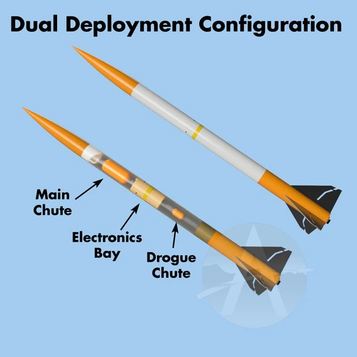 | Recovery System | 48" and 18" Nylon Parachutes |