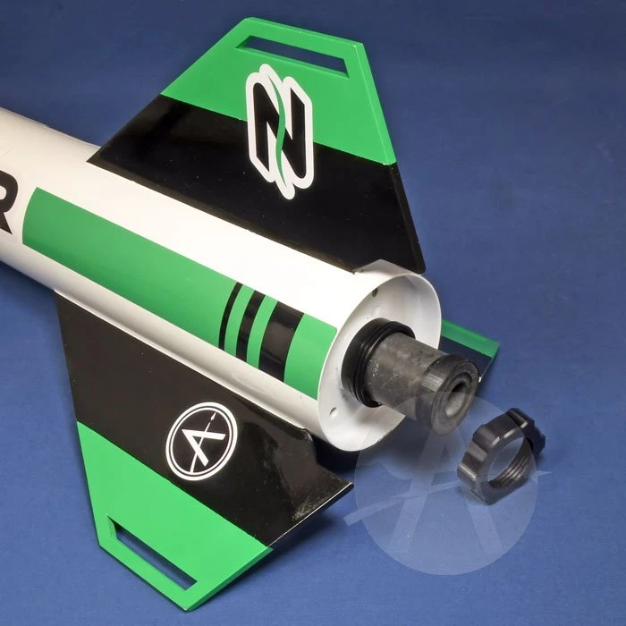 This is the LOC version of the screw-on retainer. Use it to safely restrain your 54mm diameter rocket motors from moving either forward or rearward in the rocket.