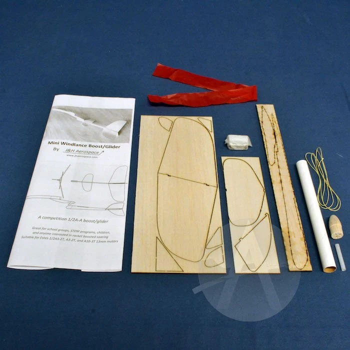 The Mini-Windlance is a competition style 13mm boost-glider rocket made for 1/2A through A-size engines. It’s a simple design, intended to fly well and can be assembled quickly. At ejection, the pop-pod, which carries the engine, falls away from the glider to lessen the weight so the glider hangs in the air longer. This is a great entry level boost-glider type rocket.