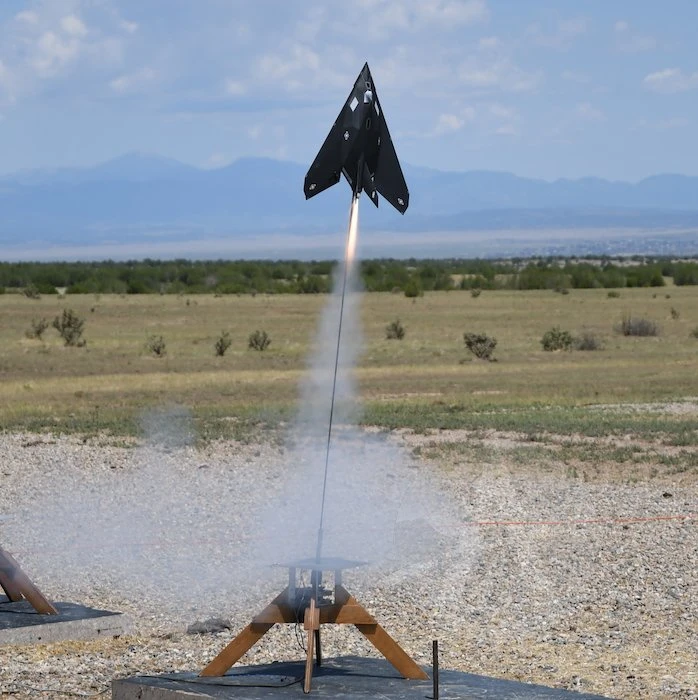 This model of the Night Fighter from North Coast Rocketry is intended for the expert-level rocketeer. It utilizes a glider style recovery and utilizes a variety of materials for construction, including balsawood, plywood, 3D printed plastic, and vacuum-form canopy.