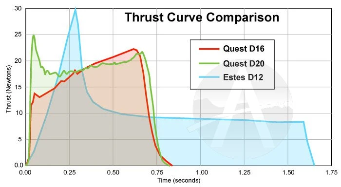 The Quest D20-6 is a great all-around motor for your typical rockets. It is particularly suited for heavier or larger diameter rockets. It features composite propellant, which has twice the energy as a black powder motor. Same size and diameter as an Estes motor, so it fits all your favorite rockets. But this is for single-stage rockets only, as it cannot be staged.